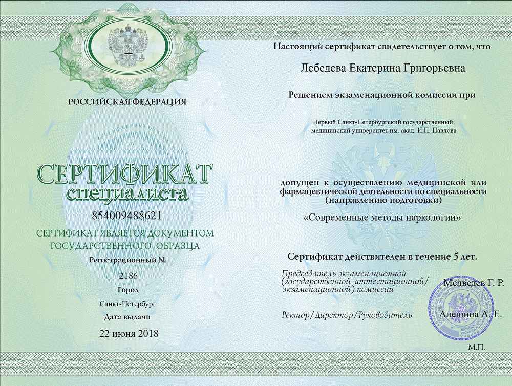 Федеральный аккредитационный центр на базе СПбГМУ им. Павлова (Наркология)