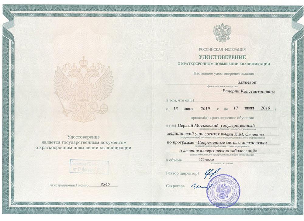 • 2019: «Современные методы диагностики и лечения аллергических заболеваний»